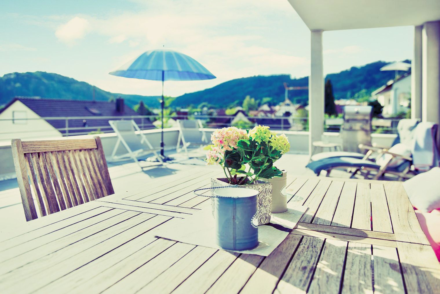 1. Im Apartment Nr. 26 ist Dein Hund willkommen – mit 60 qm Terrasse.